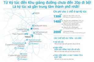 – Làng sinh viên “Gonhiak” là tòa nhà 15 tầng cách khu giảng đường với 5p đi Metro (bến Ленинский проспект)